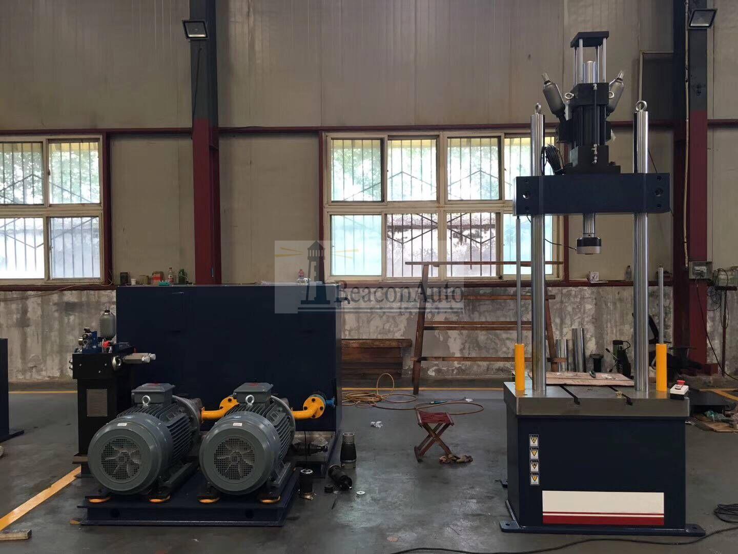 PWS-50H微機控制電液伺服動靜萬能疲勞試驗機 高溫疲勞試驗機 一. 系列產品概述: PWS系列電液伺服動靜萬能試驗系統,是我公司研制的系列動態疲勞加載試驗系統產品之一。該系列產品具有輸出力范圍廣,控制精度高,使用方便,可靠性高等特點。該系列試驗系統在研制、開發過程中吸取國際先進電液伺服動態試驗機技術,結合國內用戶的實際使用狀況設計而成。伺服作動器、恒壓伺服油源、加載框架等關鍵部件為我公司設計制造,伺服閥、傳感器、密封件等關鍵外購件均選用國際主流型號產品,大大提高了系統的穩定性和可靠性,試驗機的整體性能與國際先進產品技術水平相當。 該試驗系統,既能進行動態的高、低周疲勞試驗、程序控制疲勞試驗,也能進行靜態的恒速率、恒應變、恒應力控制下的試驗和各種常規的力學性能試驗,還可進行斷裂力學試驗,也可以對廣義范圍上材料或構件的疲勞壽命、裂紋擴展、斷裂韌性性能測試、實際試件的安全性評價、工況模擬等,通過更換附具,還可進行各類結構件、部件以及總成件等的疲勞及靜態力學性能試驗。因此有著其它任何種類的試驗機所不能比擬的優勢,是國際疲勞力學研究領域界最推崇的材料試驗設備。 試驗系統主要單元部分: l 50Kn高剛度主機:1套; l 21MP、90L/min、120L/min、170/min恒壓伺服泵站(油源):1套; l MTSD900全數字伺服控制系統:1套; l MTSDP單通道動靜態試驗軟件包:1套; l 測量相關傳感器 1套(力、位移) l 壓縮附具:1套; l 管片道槽定制工裝 1套(根據用戶提供產品圖紙設計) l 計算機、打印機:1套; l 管路、配件、工具等:1套; l 高溫爐 一套 二、系統的主要技術指標。 1、試驗力單元: l 最大動靜態試驗力:±50KN; l 有效測量范圍:全程不分檔1%—100%FS; l 靜態試驗力示值精度:小于±0.5%;動態試驗力示值精度:小于±1.0%; l 試驗力平均負荷波動度:小于±1%; l 試驗力動態負荷波動度:小于±1%; 2、位移單元: l 系統最大位移:不小于±75mm(總行程不小于150mm); l 動靜態示值精度:±0.5%FS; 3、作動器指標: l 作動器有效行程:不小于±150mm(總行程不小于200mm); l 最高工作壓力:21MPa; l 最大試驗力±10KN;±20KN;±50KN;±100KN; l 前法蘭連接,安裝在上橫梁上方 5、試驗頻率及振幅:0.1~30Hz;(幅頻特性不同、可選擇匹配不同流量液壓站) 6、主要試驗波形:正弦波、方波、三角波、斜波、半正弦、半三角、各類組合波形。 7、試驗工裝; 輔具根據試件尺寸和試驗方法定制工裝; 帶預應力調整環以消除間隙; 8、壓縮附具: l 壓盤直徑φ150mm l 與底座和傳感器接頭配套設計 9、液壓油源參數: l 壓力:21Mpa; l 流量:90L/min、120L/min、170/min l 功率:380V 22kW l 油箱凈容積260L; 幅頻特性 頻率 | 5HZ | 10HZ | 20HZ | 30HZ | 振幅 | ±5 | ±3 | ±2 | ±1 |