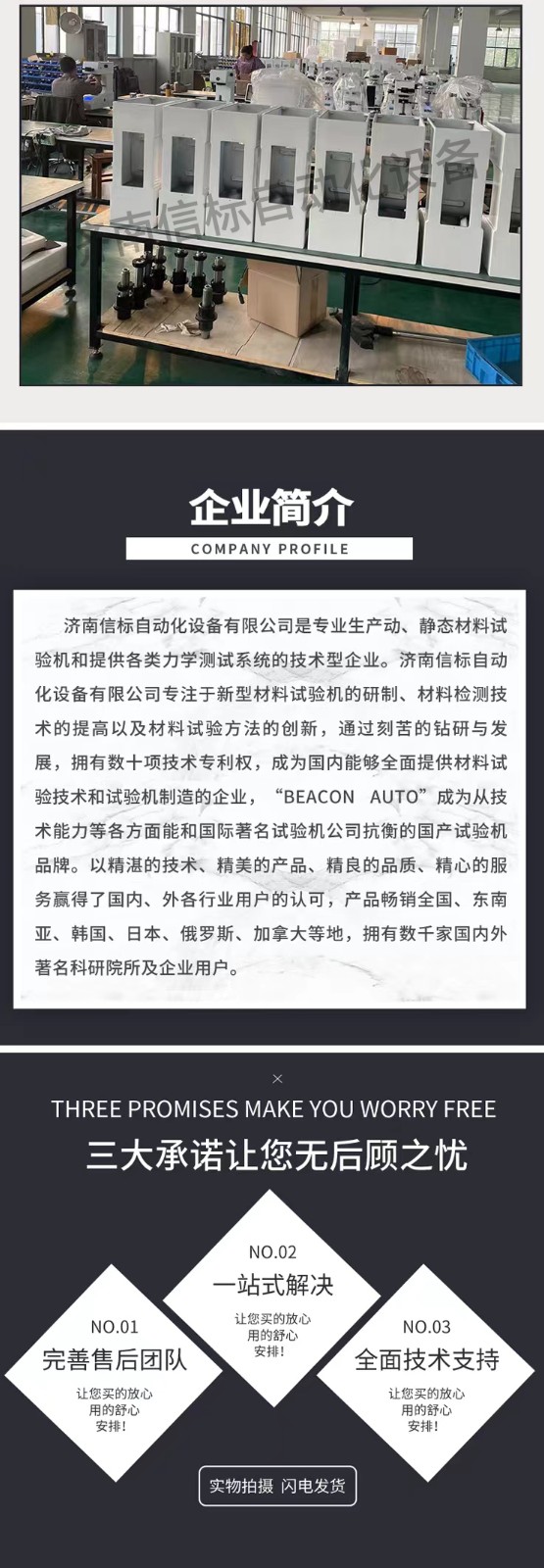 濟南信標自動化設(shè)備有限公司主要生產(chǎn):動靜態(tài)萬能疲勞試驗機,接骨板彎曲試驗機,縫合線拉伸疲勞試驗機,髖膝關(guān)節(jié)磨損試驗機,電子萬能試驗機、液壓萬能試驗機、巖石三軸、四軸,電液拉力試驗機,材料試驗機,高低溫蠕變,高低頻疲勞,拉伸、扭轉(zhuǎn)、杯突等二十多個系列兩千多個的品種。
