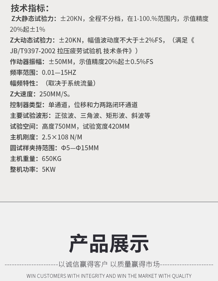 微機(jī)控制電液伺服動靜萬能試驗機(jī)技術(shù)指標(biāo)